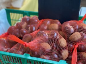 今年の「くるくるマルシェ」のイチオシは横浜産の大粒、つやつや!の「利平栗」でした。ぷっくりつやつやの秋ナスも!おいしいクッキーのご紹介、さらに磯子区から「パン屋のオヤジ」のお馴染み「お総菜コッペパン」もならび、大人気でした!
