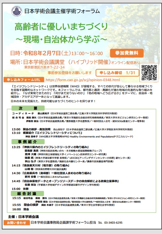『学術フォーラム 「高齢者に優しいまちづくり:現場・自治体から学ぶ」』 オンライン参加